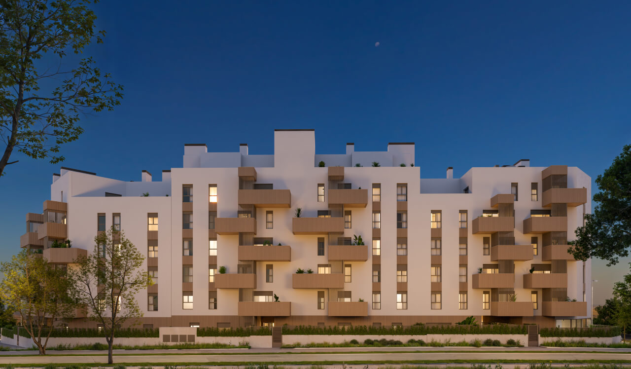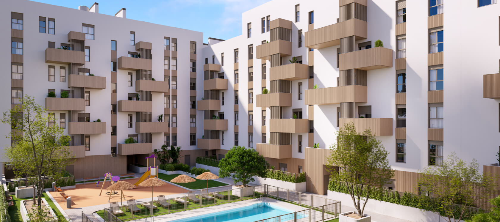 Célere Allegra is a residential complex consisting of 108 high-rise, ground floor, and penthouse apartments with 1, 2, and 3 bedrooms distributed across five entrances. All the properties have a terrace, storage room and one or two parking spaces, in addition, the development has two commercial premises.