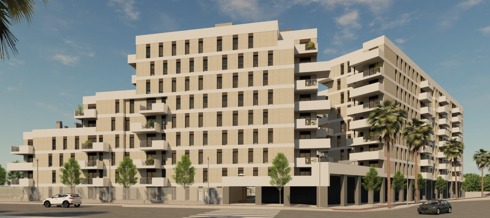Célere Jara is located on Avenida José Rodríguez de la Borbolla Camoyán, next to the future Torre de Entrenúcleos, in the district of Dos Hermanas (Seville). It lies within a new and modern urban area currently undergoing extensive development, offering a wide range of amenities such as large and medium-sized supermarkets, a variety of restaurants and cafés, generous green spaces with cycle lanes for outdoor enjoyment, and excellent sports facilities including the Centro Deportivo Municipal Pepe Flores, the Gran Hipódromo de Andalucía Javier Piña Haffner, and Loyola University.