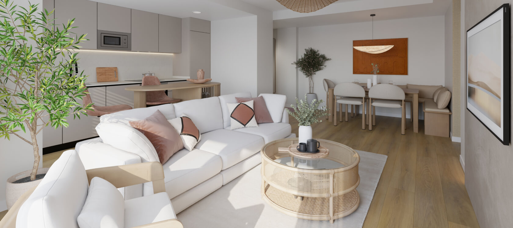 Célere San Vicente I boasts excellent communal areas, including an outdoor swimming pool, toilet facilities, and a bicycle parking area. Furthermore, it provides a coworking space, a social-gourmet room, children’s play area, and a fitness space, all designed to optimise your leisure time in an environment created for everyday enjoyment.